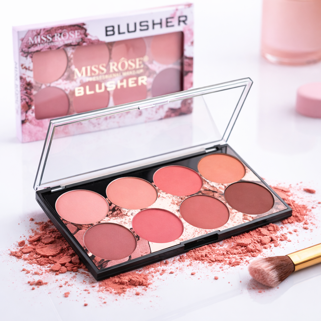 Enhance your natural glow with the MISS ROSE® Professional Make-Up Blusher Palette. This beautifully curated palette features multiple soft matte blush shades designed to suit every skin tone. The finely milled texture blends effortlessly into the skin, delivering a smooth, radiant, and long-lasting finish for a fresh, healthy look all day