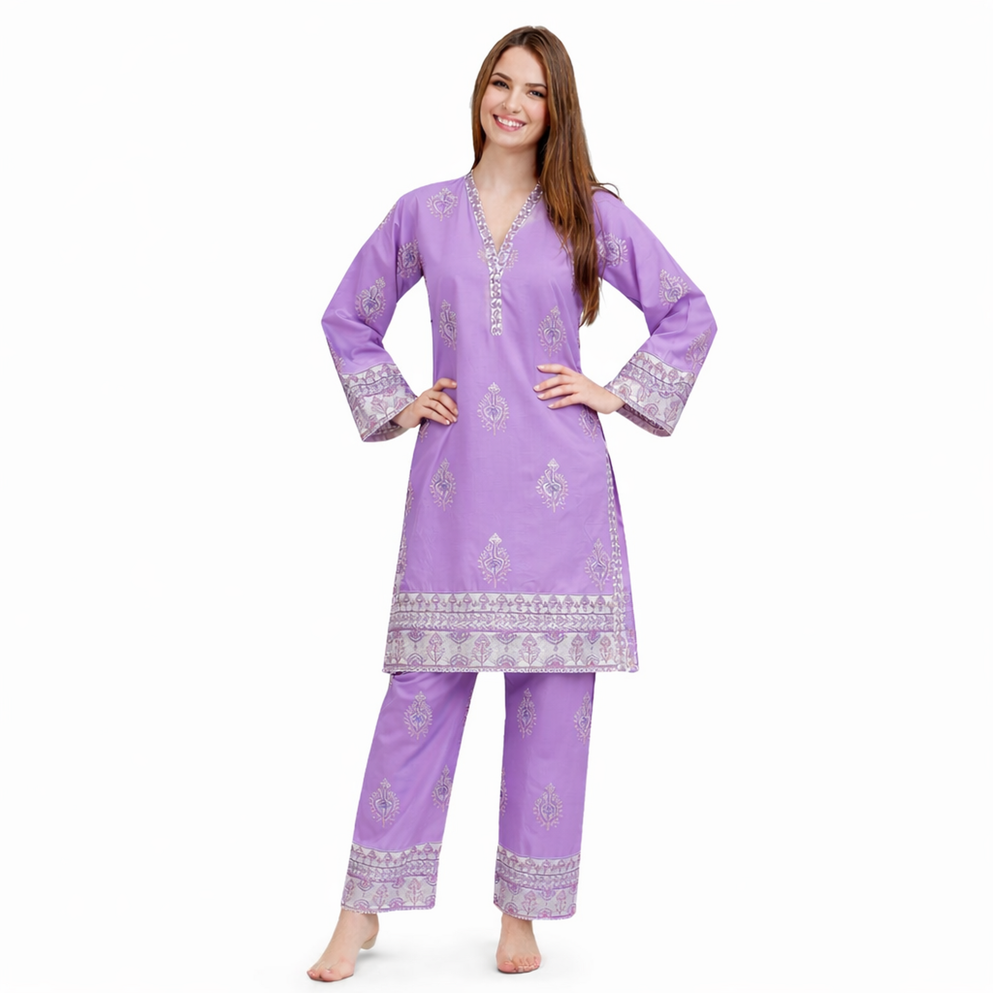 traditional South Asian kurta–trouser set with a fresh, everyday-festive vibe.